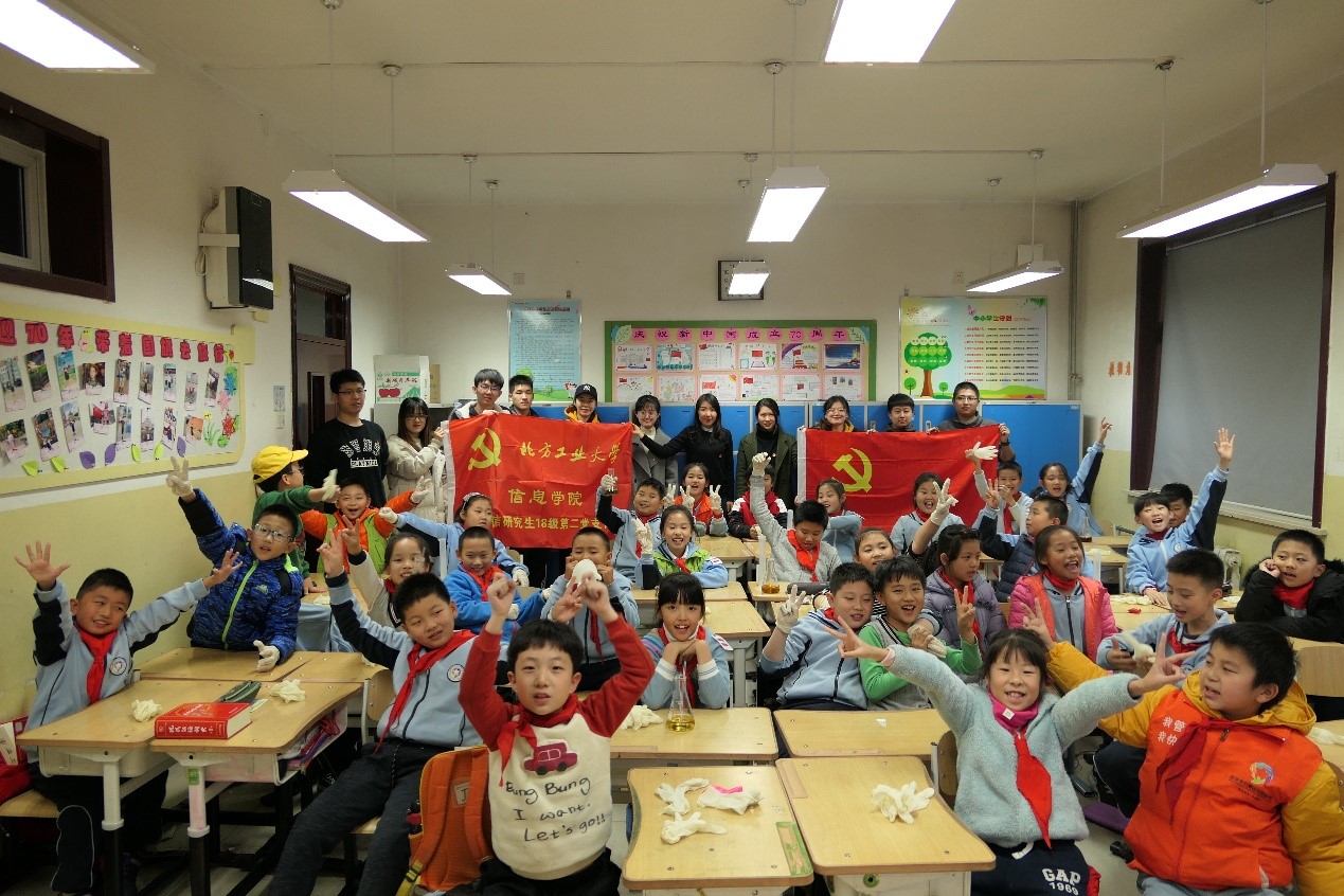 为践行研究生党员严格以党章要求自己,服务社会,11月29日,太阳成集团tyc122ccvip电信研究生18级第二党支部在张梅老师的带领下前往石景山实验小学,为四年级的小员工带去了一节生动有趣的化学课。这也是支部与石景山实验小学建立“共建基地”以来,开展“科技进课堂”专题共建的第六次活动。