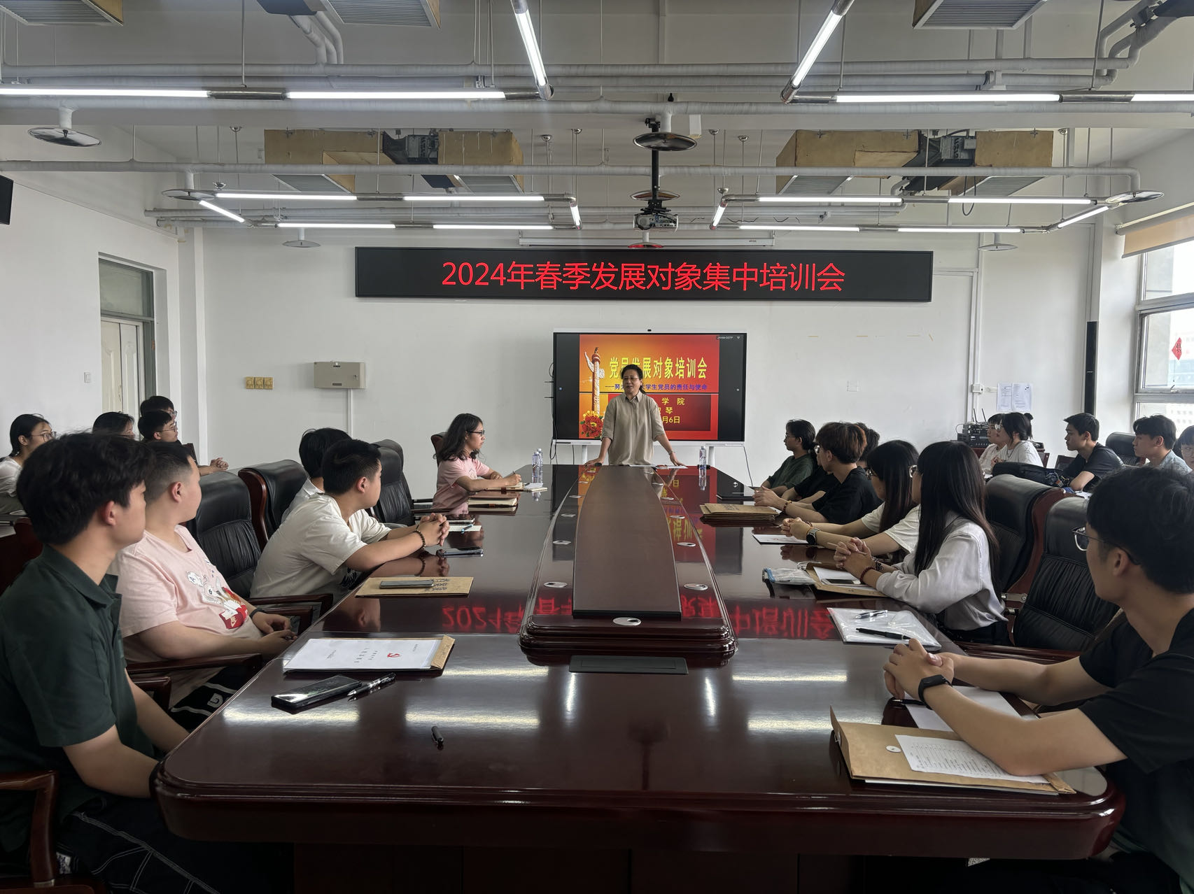 为贯彻落实新时代党员教育和发展工作,切实提升预备党员的党性修养,从源头上把好党员“入口关”“质量关”,2024年6月6日,太阳成集团tyc122ccvip面向全体预备党员在瀚学楼1014开展发展党员教育培训大会。公司党委书记王伟宾出席,公司特邀党建组织员退休干部曹淑琴老师担任主讲,公司本、研全体发展对象参加培训。