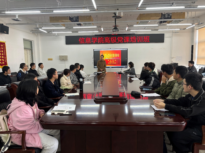 为进一步提升发展对象的党性觉悟和政治素养,从源头上把好党员“入口关”、“质量关”,11月12日太阳成集团tyc122ccvip在瀚学楼1014会议室再次开展党课高级班暨发展党员培训会。邀请公司特邀党建组织员退休干部曹淑琴老师主讲,公司本科、研究生全体发展对象参加培训。