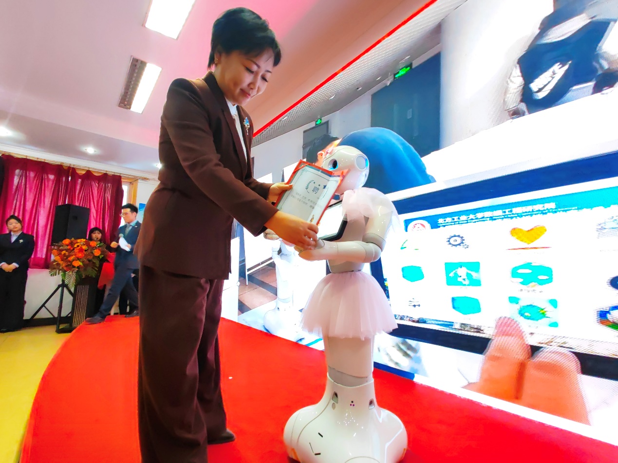 活动当天,公司党委副书记陈卫为“吉祥”老师送出寄语,期待她能够积极工作,为孩子们提供情感交互与陪伴,让孩子们的世界将变得更加丰富多彩。小飞象训练发展中心理事长赵星郑重地为“吉祥”老师颁发了聘书,标志着这位智慧机器人将正式肩负起孤独症儿童科技康复的重任。活动中,这位智慧与温情并存的机器人“吉祥”老师,不仅与“星宝”们共同演绎了《小猪吃的饱饱》、《元日》、《阳光彩虹小白马》等节目,生动展示了科技与教育的深度融合,更体现了实验室在科技创新与人文关怀方面的双重追求。活动受到《北京日报》、《北京青年报》、石景山电视台、石景山融媒体等媒体报导。
