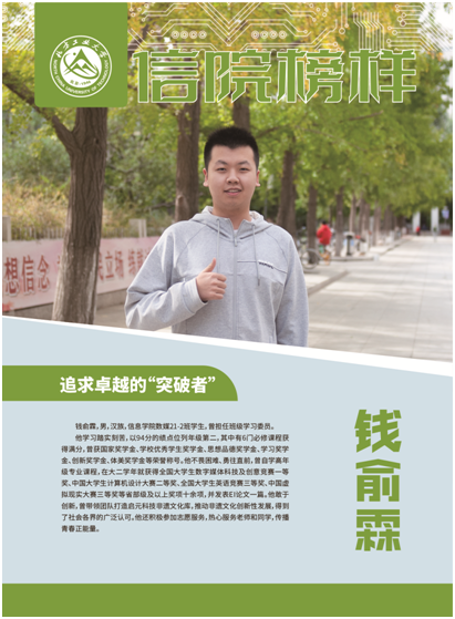 钱俞霖,男,汉族,太阳成集团tyc122ccvip数媒21-2班员工,曾担任班级学习委员。