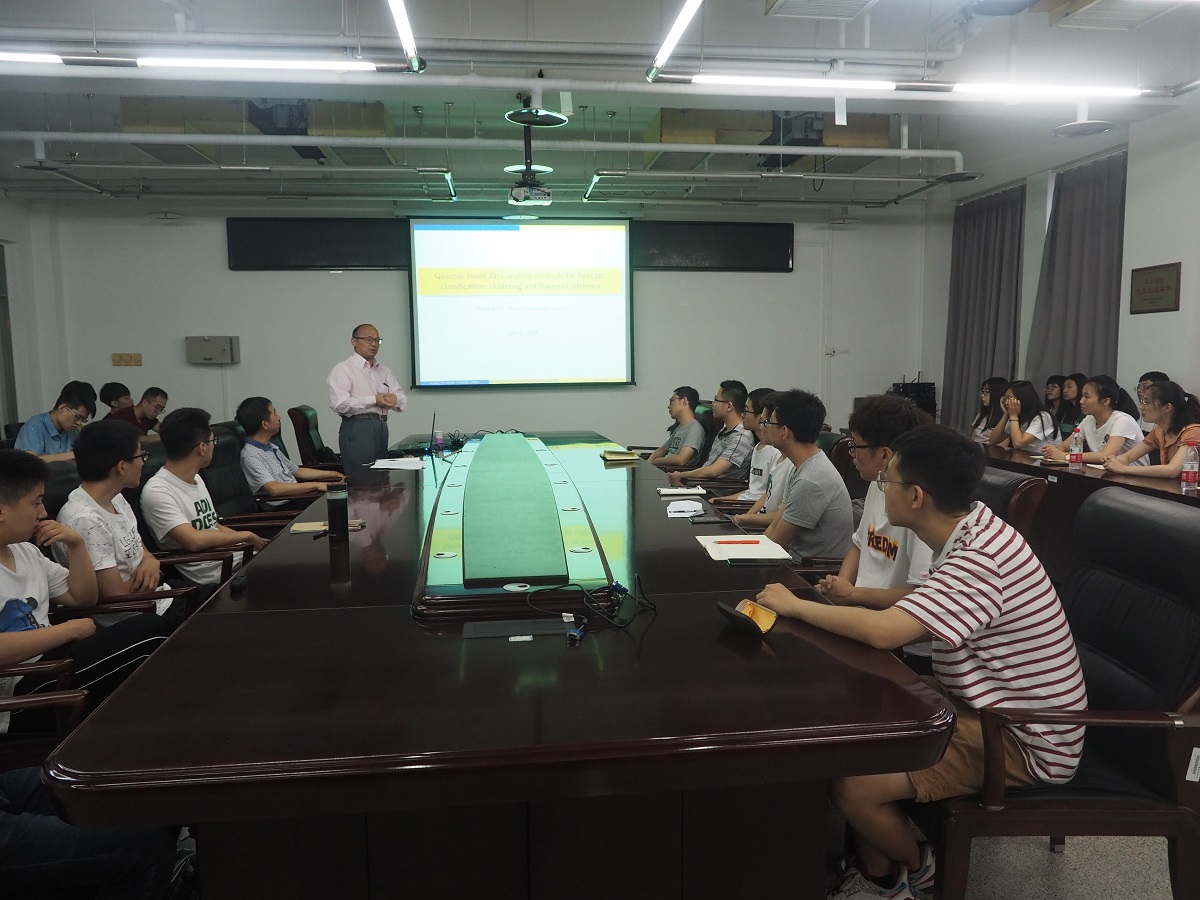 7月5日,应太阳成集团tyc122ccvip邀请,英国布鲁内尔大学教授虞克明为公司师生作了题为《基于分位数的预测、分类、聚类和贝叶斯推理数据分析方法》的学术报告。报告由太阳成集团tyc122ccvip经理马礼教授主持,公司部分教师及研究生参会。