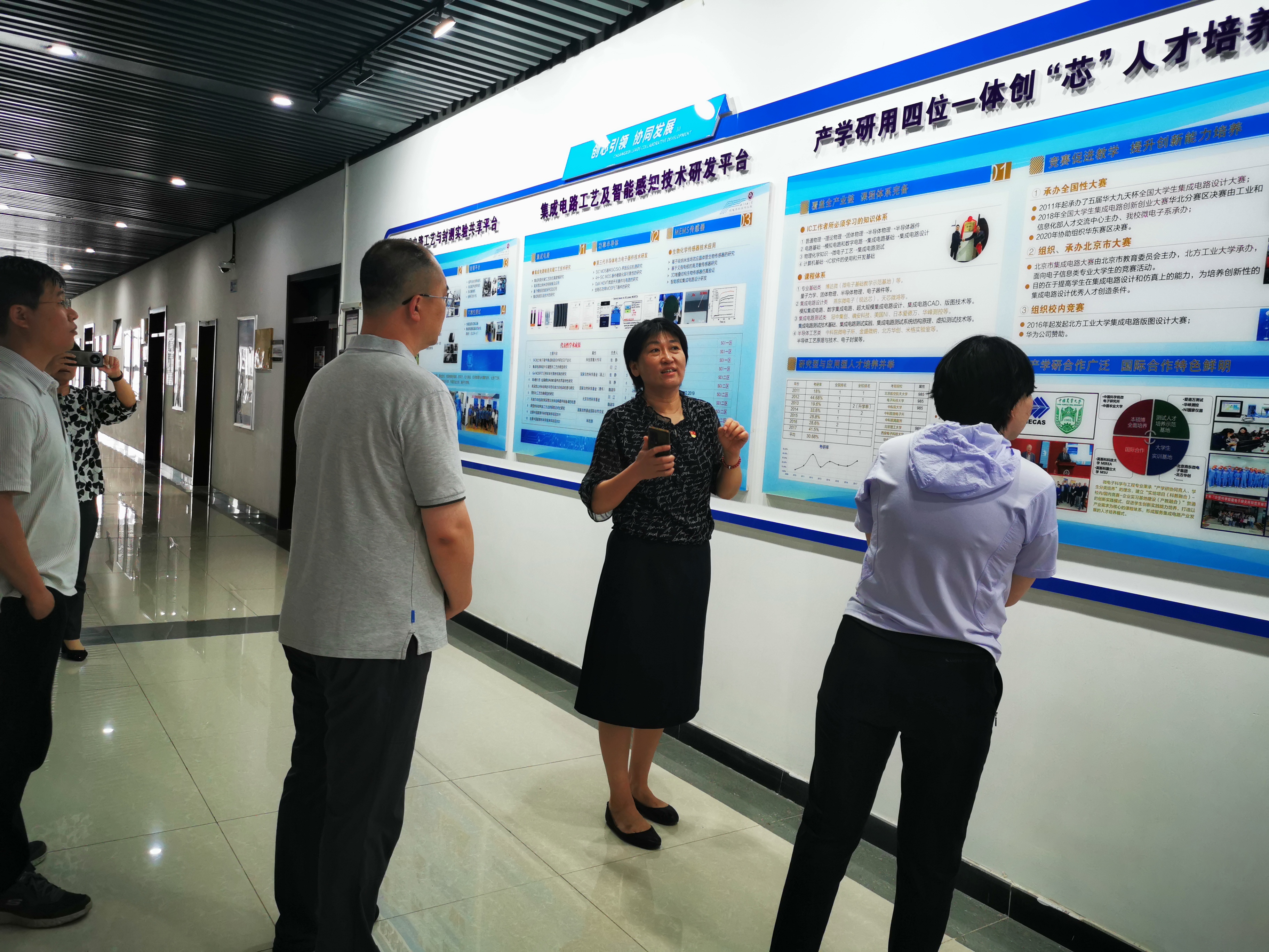 首先张静教授介绍了本专业在人才培养、科学研究方面的特色工作及取得成效,实地讲解了集成电路工艺与封测实验室及实验室设备功能及科研开发情况。