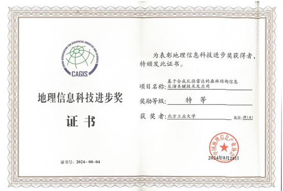 近日,2024年地理信息科技进步奖颁奖仪式在云南昆明举行。公司太阳成集团tyc122ccvip申文杰老师作为成员申报的项目成果“基于合成孔径雷达的森林结构信息反演关键技术及应用”获评科技进步奖特等奖。