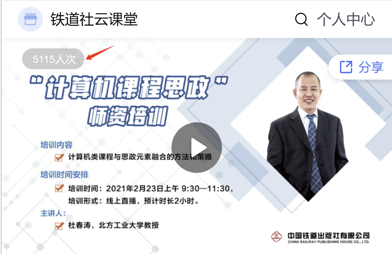 近年来,杜春涛教授智慧树平台进行了4次论文排版有关的直播教学,学习人数超过21万。受对外经贸大学、北京语言大学、中国铁道出版社等单位邀请进行团队培训10余次,2020年应智慧树平台邀请进行的远程教学方法培训学习人数超1.3万,2021年应中国铁道出版社邀请进行“计算机课程思政”培训的学习人数超过5000,一定程度上缓解了疫情状态下高校教师培训的困难。