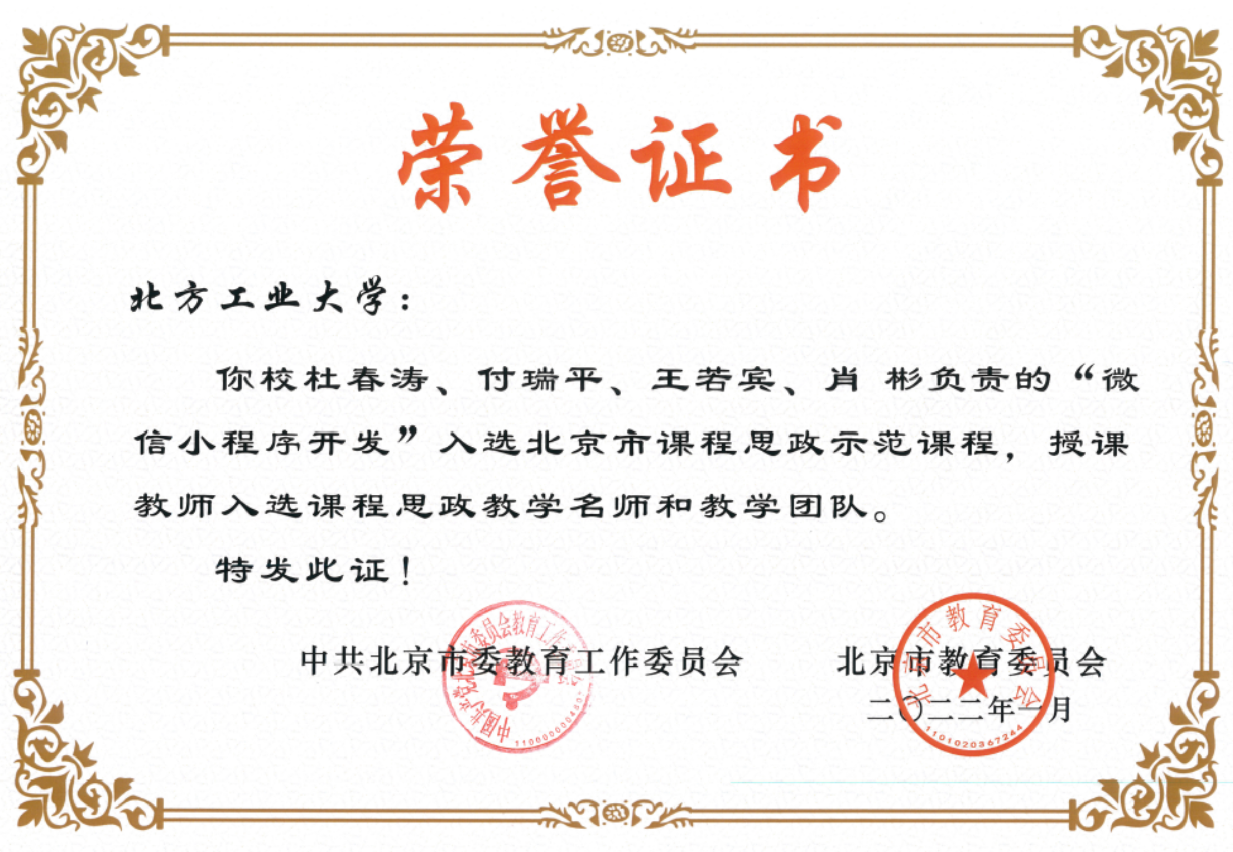 “纸上得来终觉浅,绝知此事要躬行”,在深入研究和多年实践的基础上,杜春涛团队负责的《面向对象程序设计》课程获教育部首批课程思政示范课,《微信小程序开发》课程获北京市首批课程思政示范课、全国高等院校计算机基础教育研究会优秀课程思政教学案例奖和首届智慧树杯课程思政大赛优秀奖。“新华思政网”、“在线学习”网和“人民公开课”等媒体都进行了相关报道。
